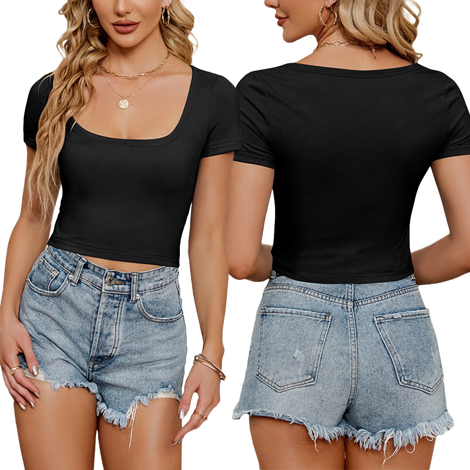 Pudcoco Women Summer Casual Crop Tops U Neck Short Sleeve Knitted T Shirts Summer Slim Fit Exposed Navel Shirts Streetwear Walmart Canada